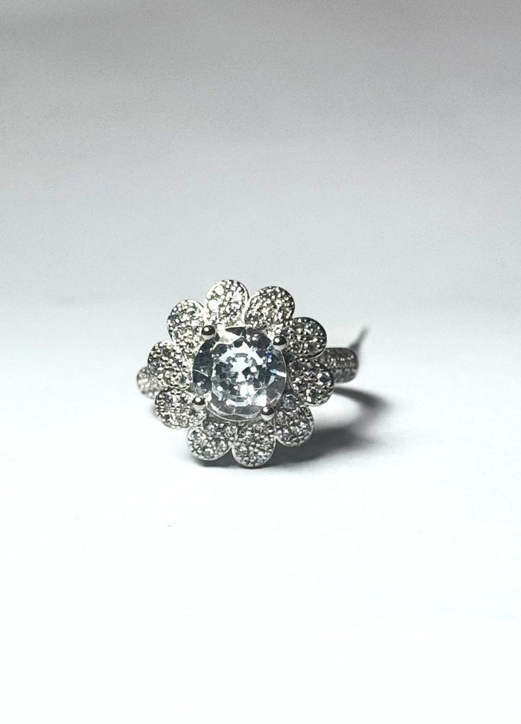 A radiant flower ring adorned with shimmering diamond stones, designed to capture the light and hearts alike — perfect for both everyday elegance and special occasions.