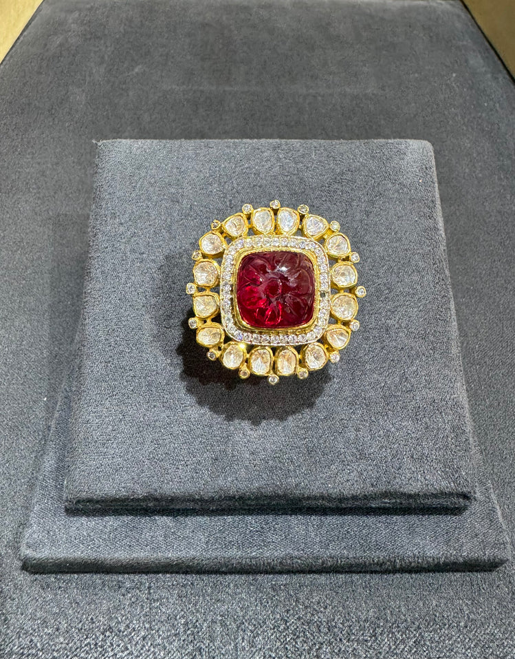 RED STONE POLKI RING