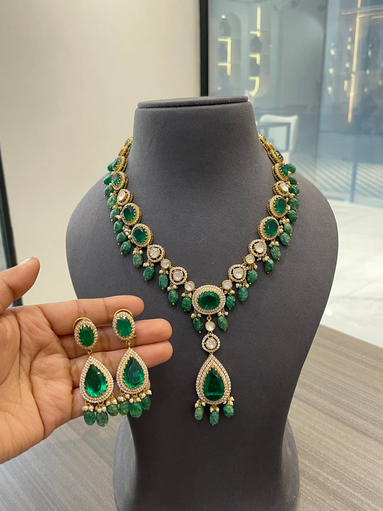 925 Silver Viridia Polki Necklace Set