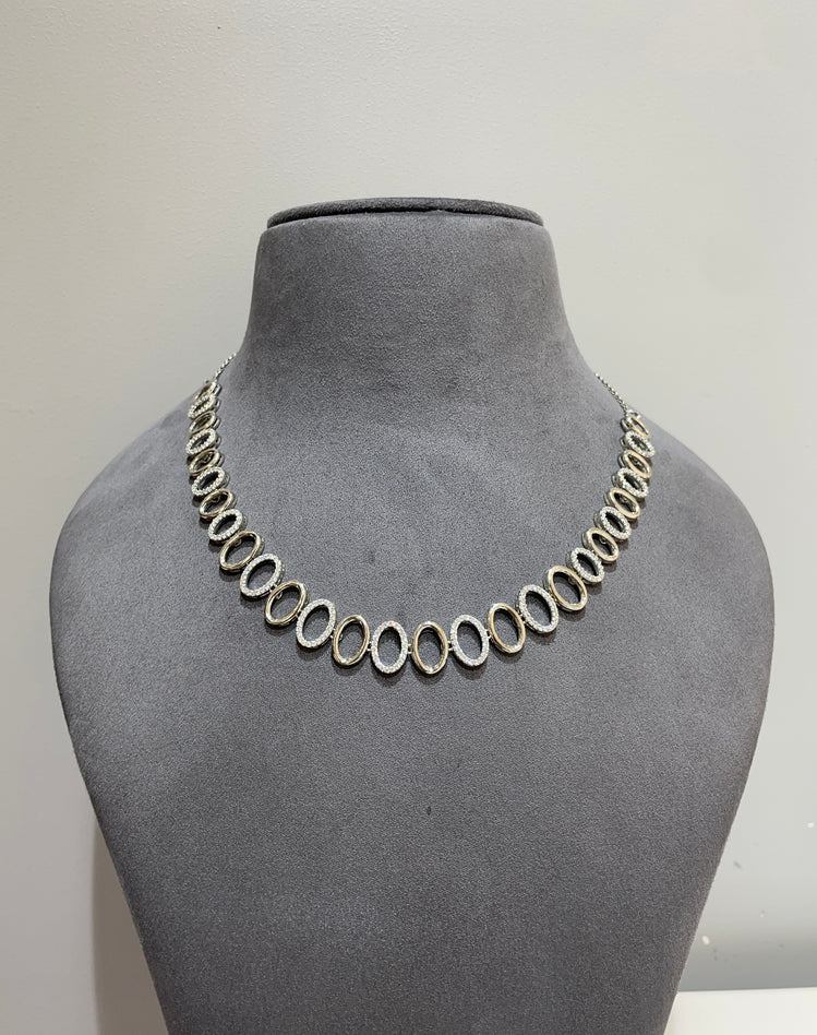 925 Silver Geometric Design Diamond Look Necklace Set