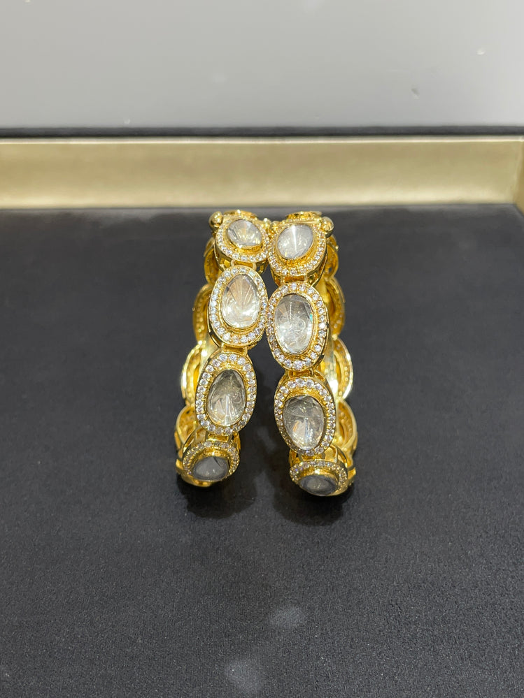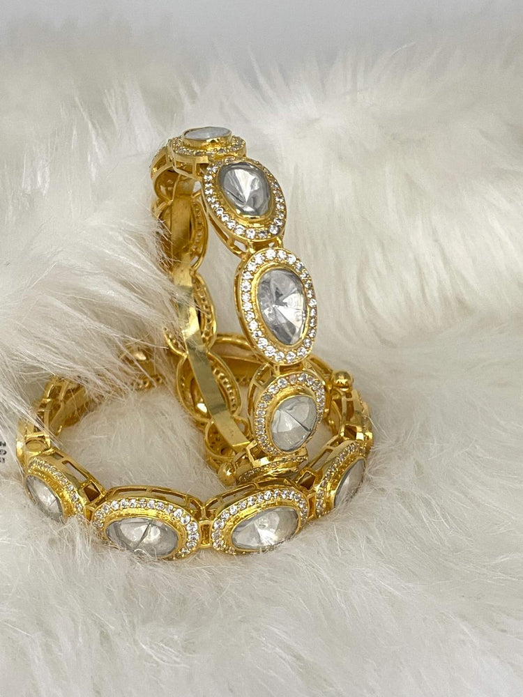 CLASSIC PURE SILVER POLKI BANGLE | 22KT GOLD PLATED ( 1 PAIR )