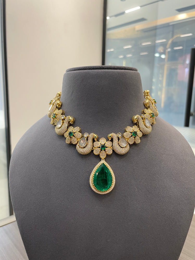 BEAUTIFUL PEACOCK SILVER POLKI SET
