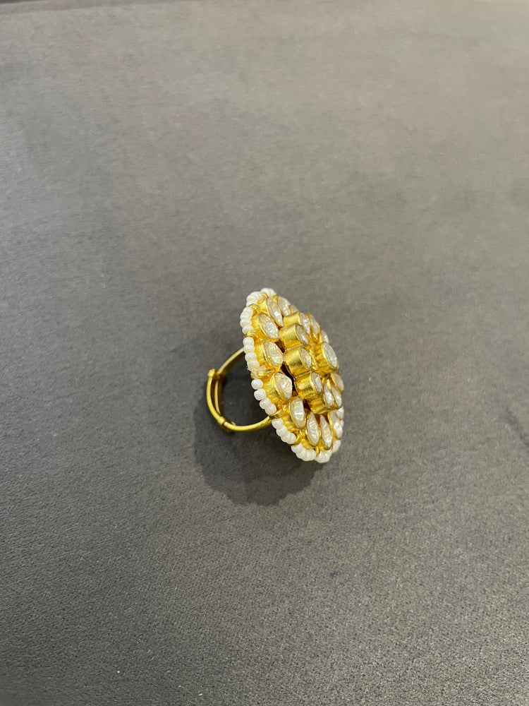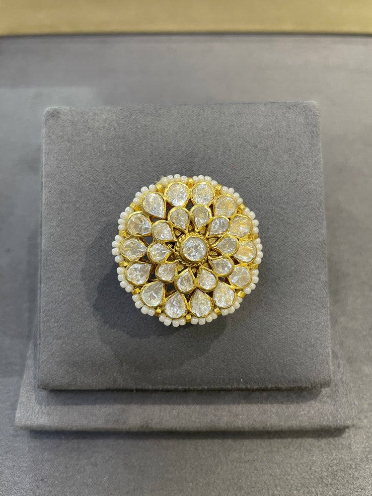 925 Silver Floral Polki Ring