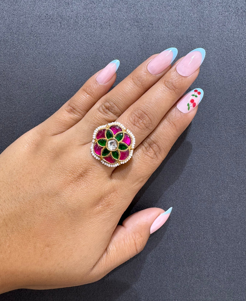 925 Silver Floral Gold Look Ring