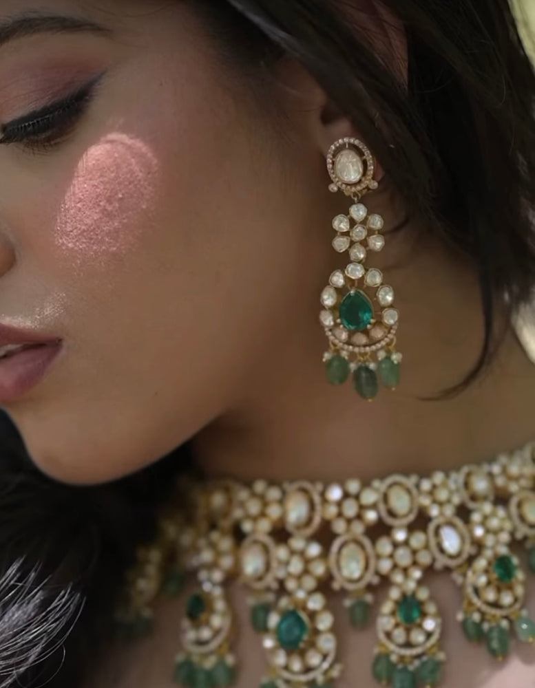 HEAVY GREEN PURE SILVER POLKI SET